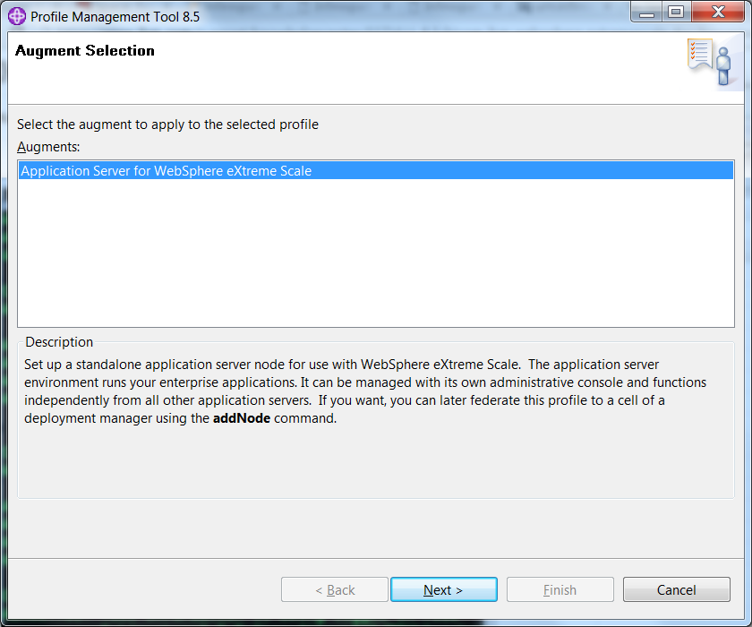 - Augment the WAS profile for eXtreme Scale. TIPS: You can perform this step by launching the Websphere Customization Toolbox. This toolbox can be launched by running the first step batch file (present under WAS profile's start menu).