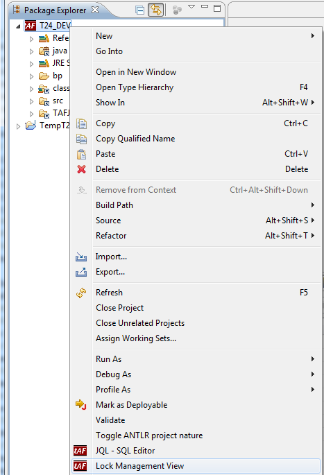 You can access this view from the contextual menu on the TAFJ project as shown below.