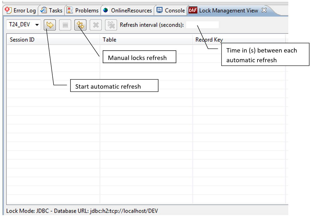 This section describes an Eclipse view, which is available to manage the locks that are handled by the TAFJ lock manager.