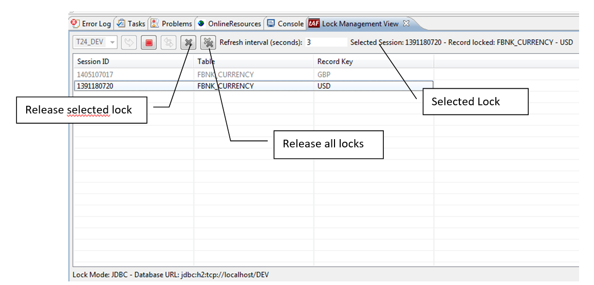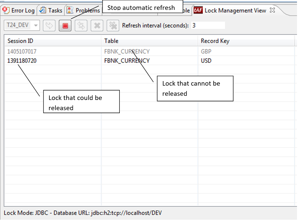 Once the locks are displayed you are allowed to select the one that belongs to your Eclipse environment and to release them if needed.