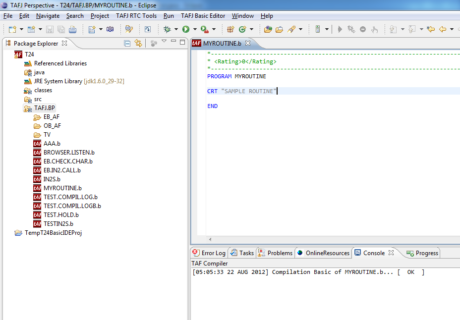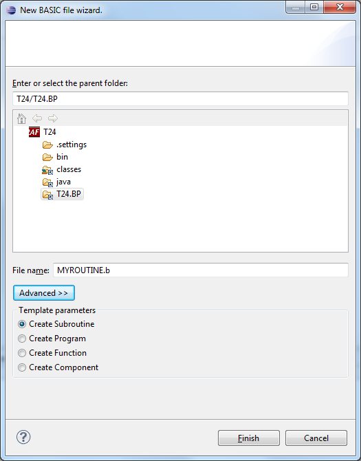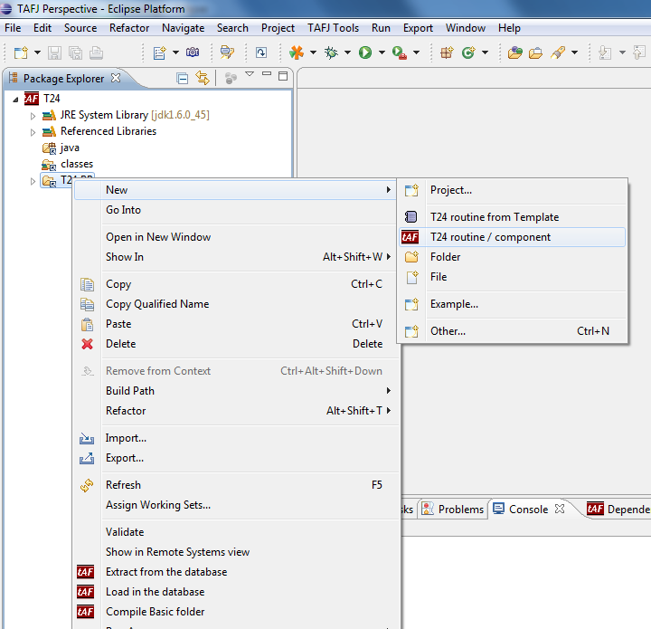 - Right-click the folder in which you want to add the Basic file and click New > T24 routine/ component.