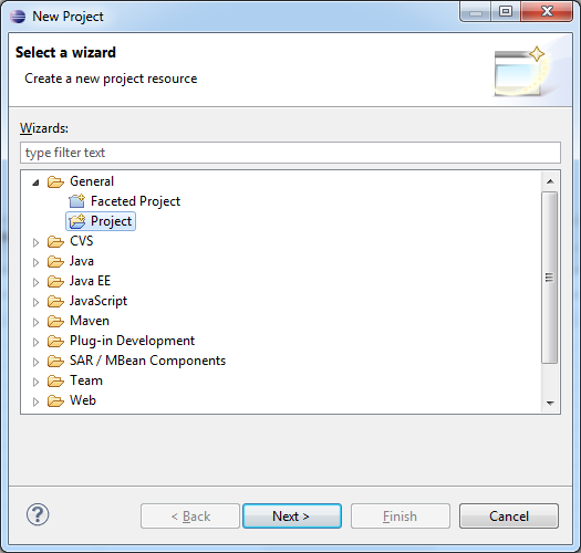 A TAFJ project is based on an Eclipse project. To create a TAFJ project, you need to create a general Eclipse project and promote it to a TAFJ project (which is a specialized Java project).
