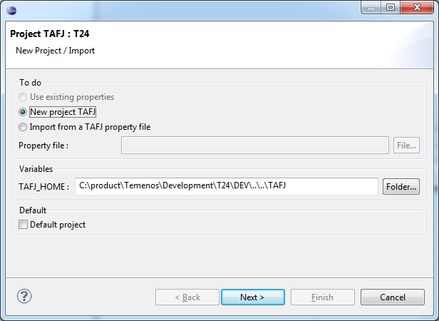 - New project TAFJ - Even if a file already exist, you will create a new property file based on the .property file in the < TAFJ_HOME >/conf.