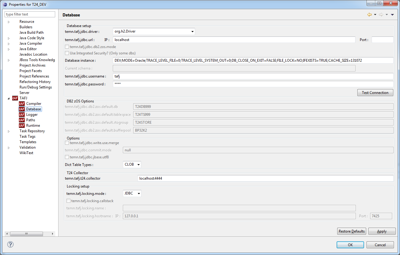 The TAFJ project creates and uses an existing property file in your TAFJ_HOME conf directory. The property file will be created as <Project_Name>.properties.