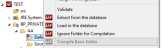 When you flag a folder as ignored, it creates a small mark on the top-left of the folder icon. Also, when you try to compile this folder, it will not allow you to compile as the Compile Basic Folder option will be inactive as shown below.