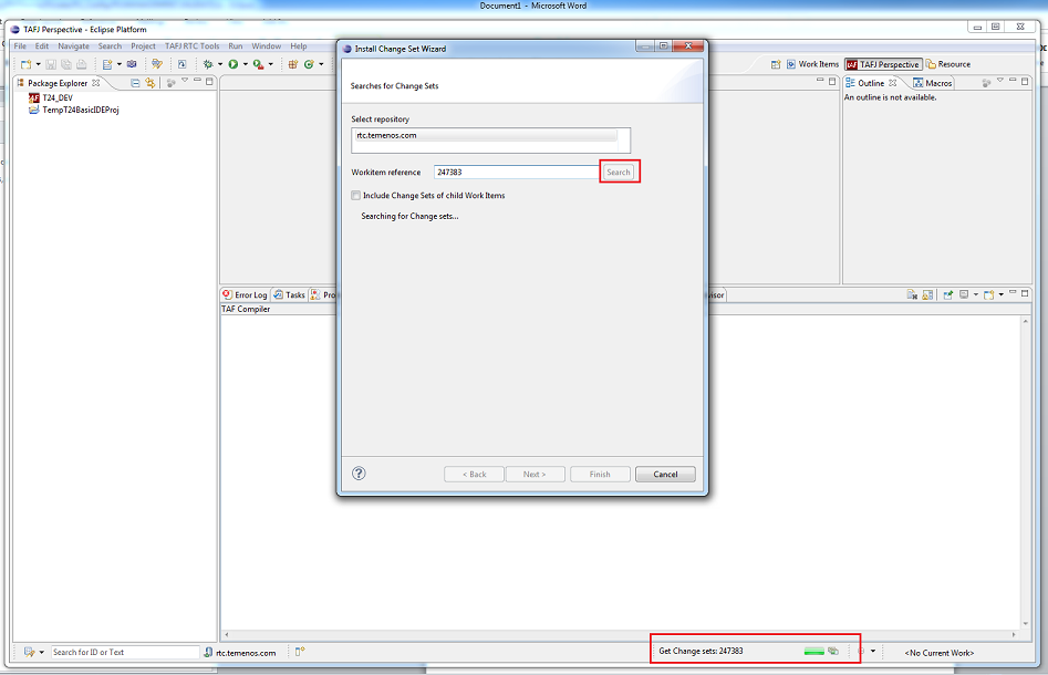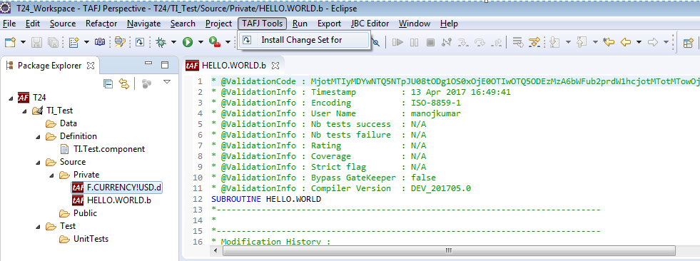 - From the Eclipse menu, click TAFJ Tools > Install Change Set for.