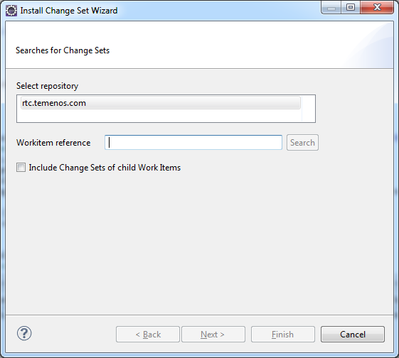 - In the Install Change Set Wizard, specify the number of work item containing the change set you want to install and click Search.