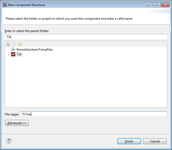 - In the New component Structure wizard, enter a component name in the File name field.
