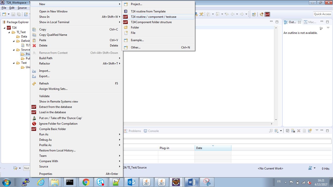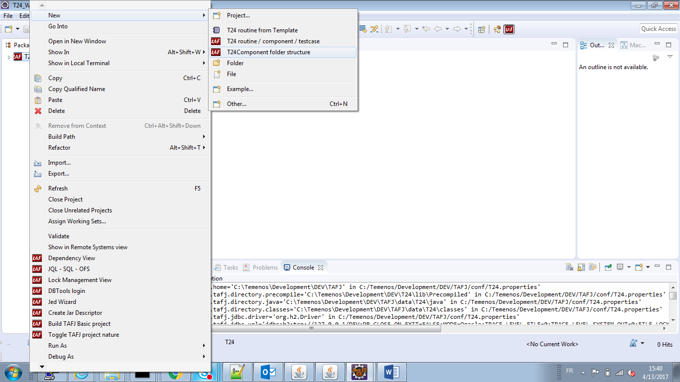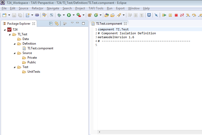 - Right-click the project > New > T24Component folder structure to add a basic folder.