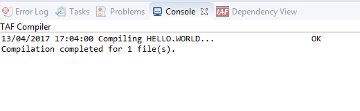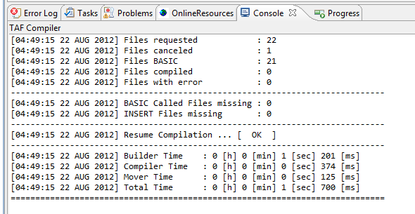 At the end of the process a report in the Console is displayed. The Problem tab shows you the details of the compilation.