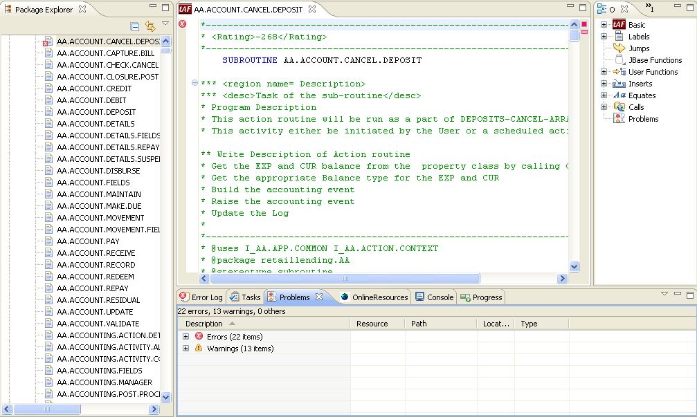 In case of errors, you can view the errors in the Problems tab. Double-clicking an error will open the basic file in the editor.