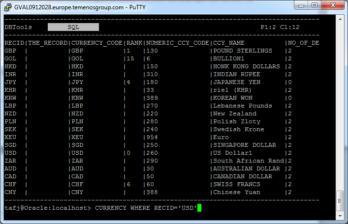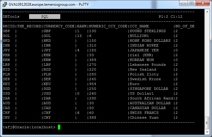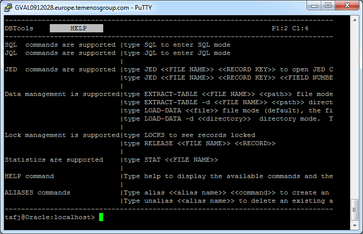 NOTE: History is saved at the end of your session so you have the ability to load it the next time you will use DBTools console. Data are stored in a properties file (TAFJ_DBTools) under %USERPROFILE% on Windows and under $HOME on Linux.