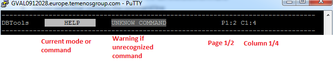 DBTools console consists of three panels: