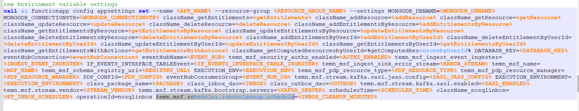 - In install scripts, you should add the scheduler-specific properties mentioned below under function app settings for inbox cleanup functionality