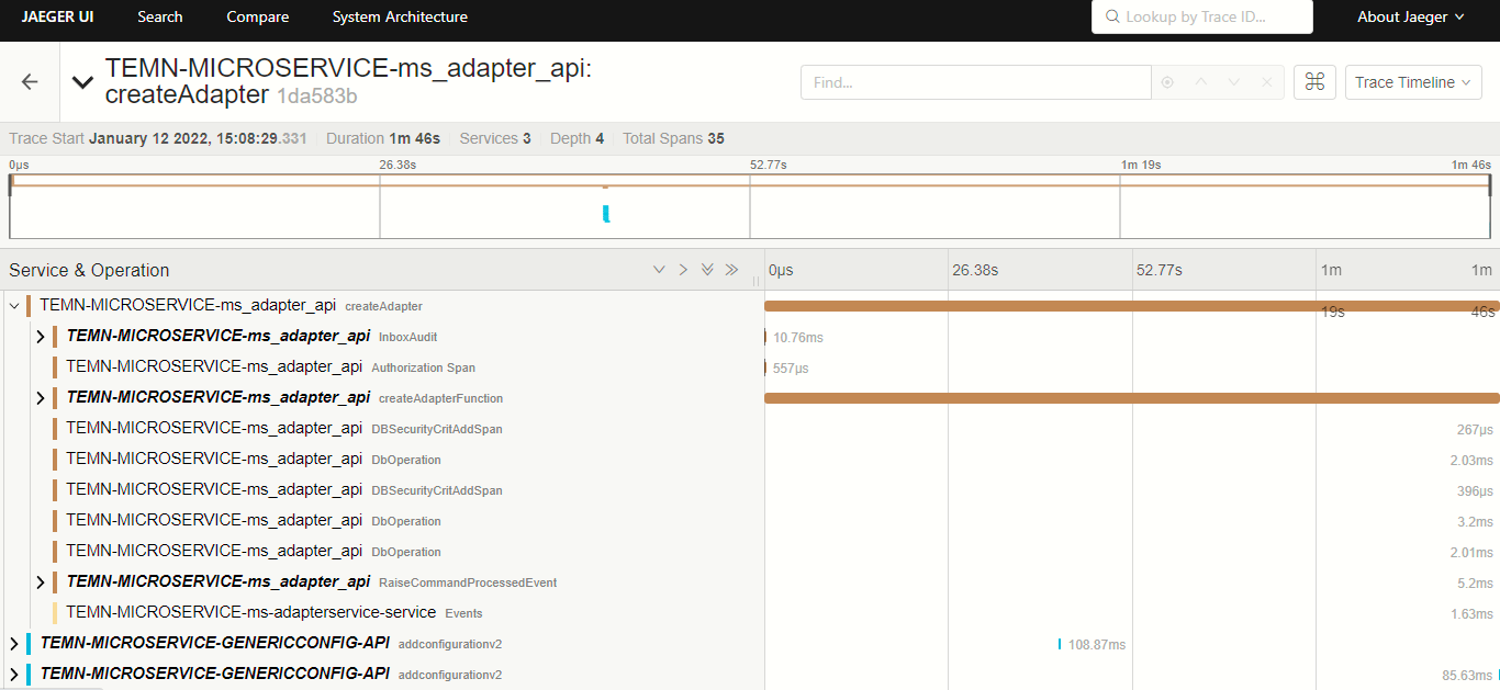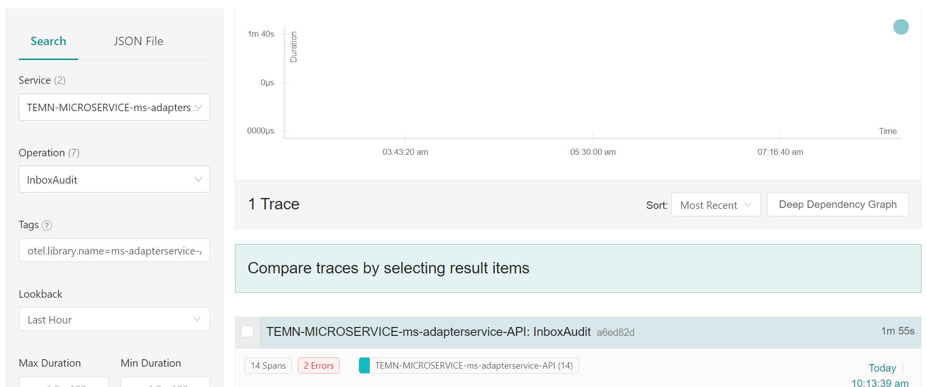 - Select a trace to visualize the span operation and tag information of that trace.