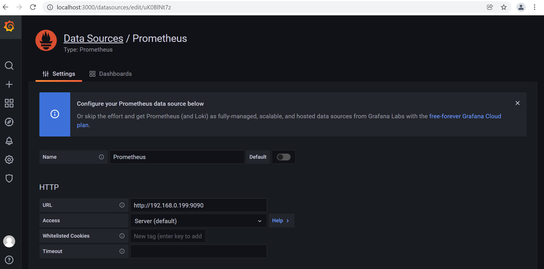 - Log into the grafana. http://localhost:3000/ using "admin" as the Username and Password.