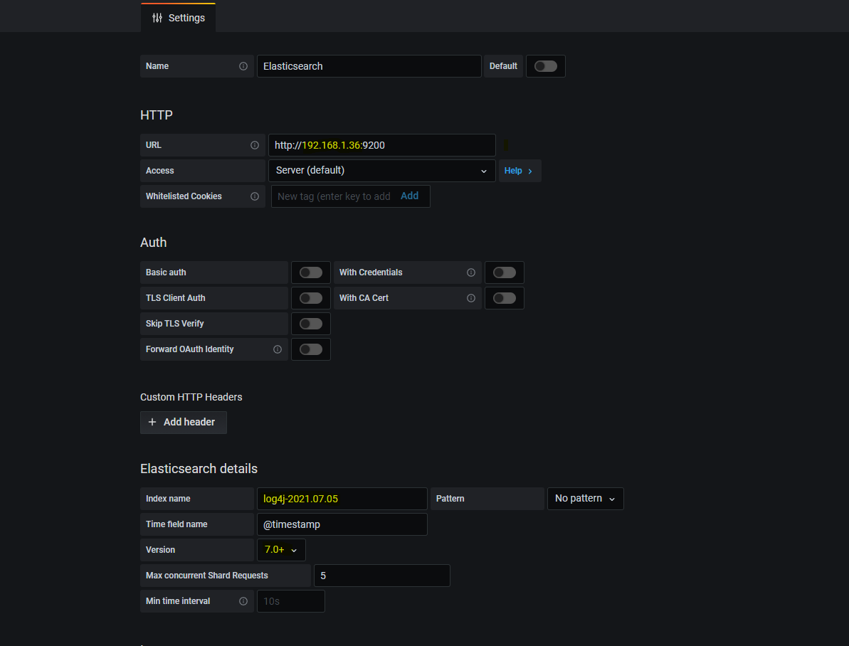 - Once logged into data source for grafana dashboard, configure the data source with an IP address.