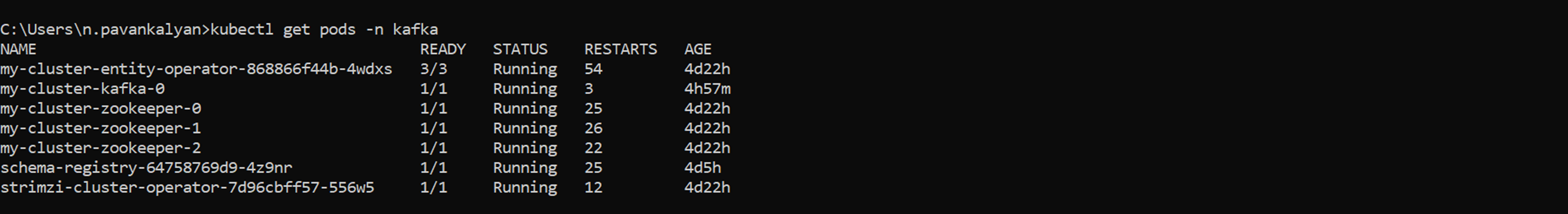 kubectl get pods -n kafka