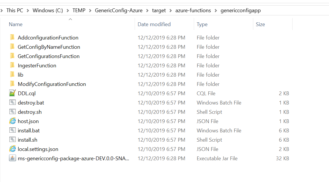 Folder structure for the ms-genericconfig-package-azure-<release>.zip is shown below.