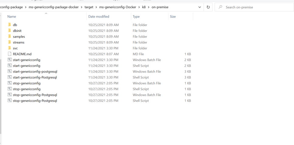 Generic configuration microservice for docker deployment is available as a single release bundle (ms-genericconfig-package-docker-DEV.0.0-SNAPSHOT.zip).