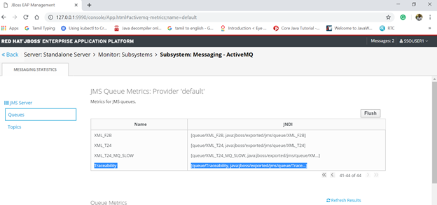 <jms-queue name="Traceability" entries="queue/Traceability java:jboss/exported/jms/queue/Traceability"/>