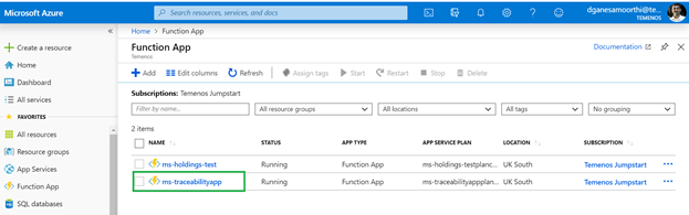- Log in to Azure portal and check if the resource group and functions applications are created properly.